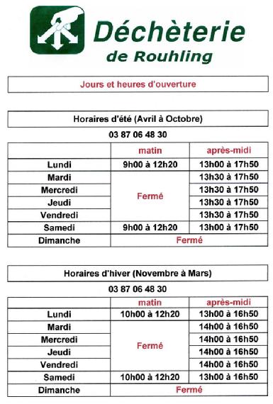 Pour télécharger les horaires de la déchèterie de Rouhling :
