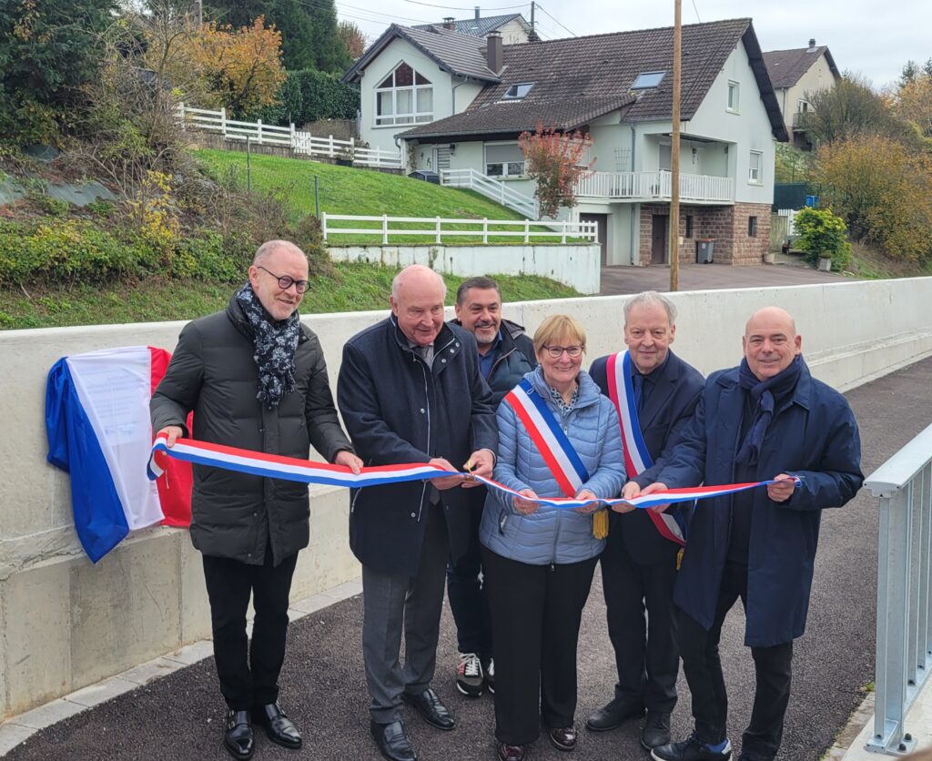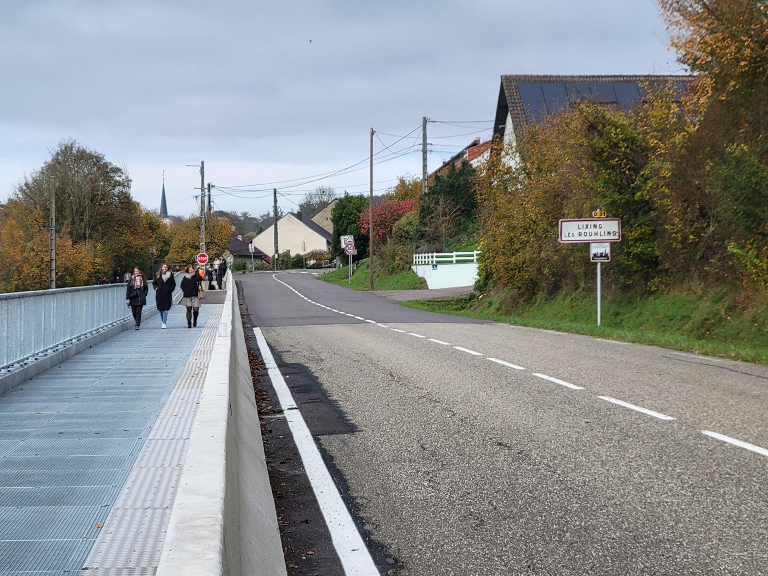 L’inauguration a eu lieu en présence des maires et élus de Lixing et Grosblie, des Présidents de la CASC et de l’Eurodisctrict SaarMoselle, du Conseiller Départemental, des représentants du programme Interreg Grande Région, de Terres d’Oh, de l’Office de Tourisme de Sarreguemines Confluences et des entreprises intervenues sur le chantier.